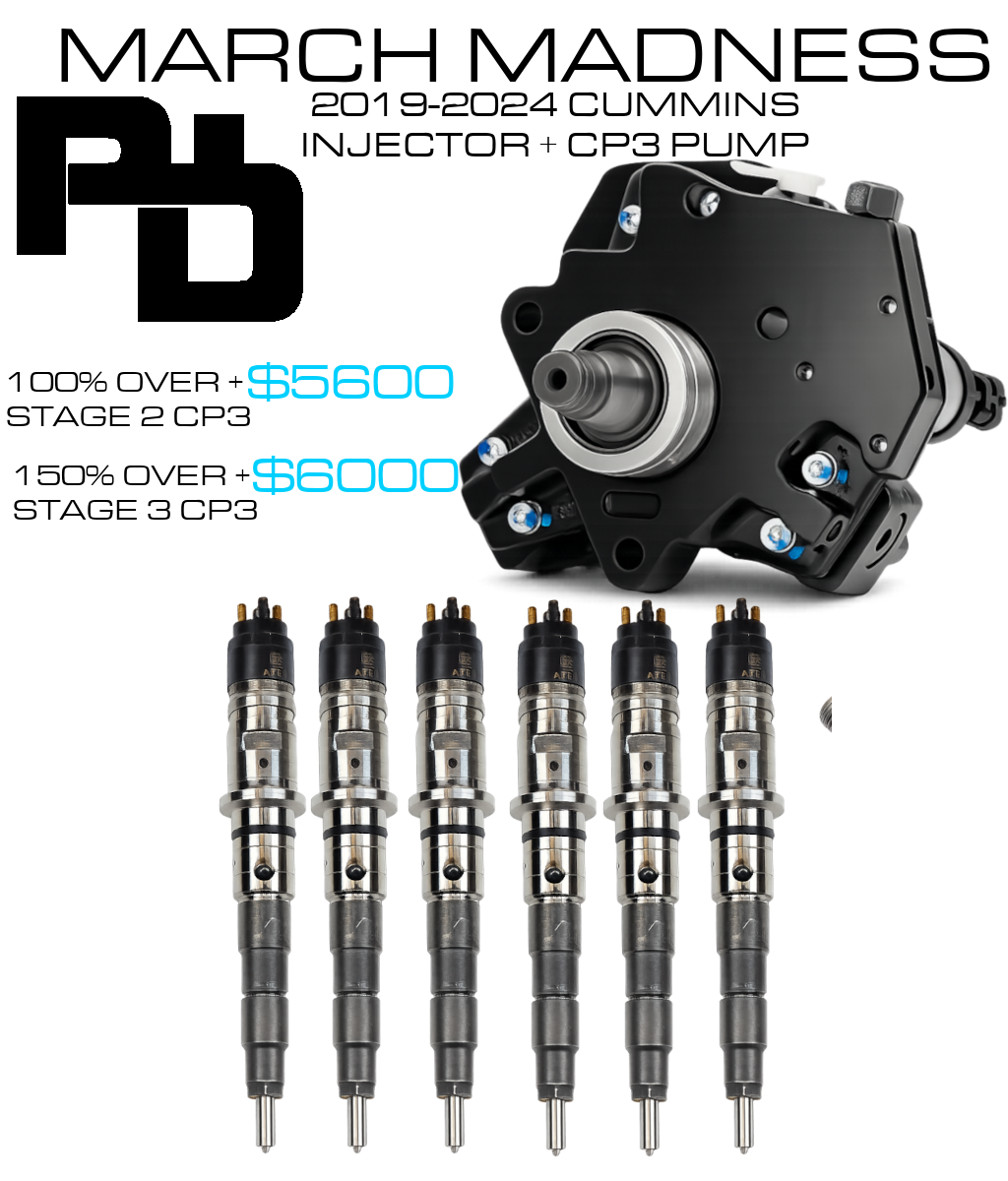 FOR MARCH MADNESS THIS HUGE SALE WILL INCLUDE 2019-2024 INJECTORS AND PUMP COMBOS 100% OVER W/ STAGE 2 CP3 150% OVER W/ STAGE 3 CP3